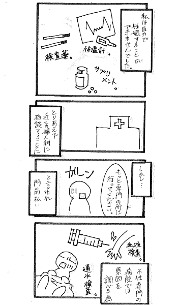 まずは、不妊治療を始めるにあたり、家から近い婦人科がある病院へ相談しました。しかし、その病院では、「不妊治療できないので、専門の病院に行ってください。」と言われました(なぜ?婦人科は無理なの・・・?)